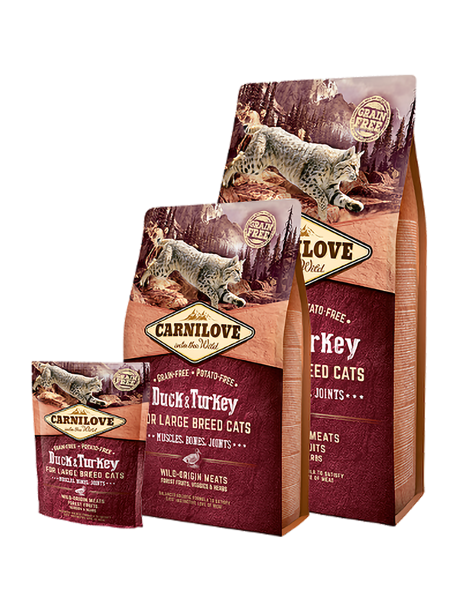 CARNILOVE Duck & Turkey for Large Breed Cats has been formulated with respect for the natural composition of the feline diet.